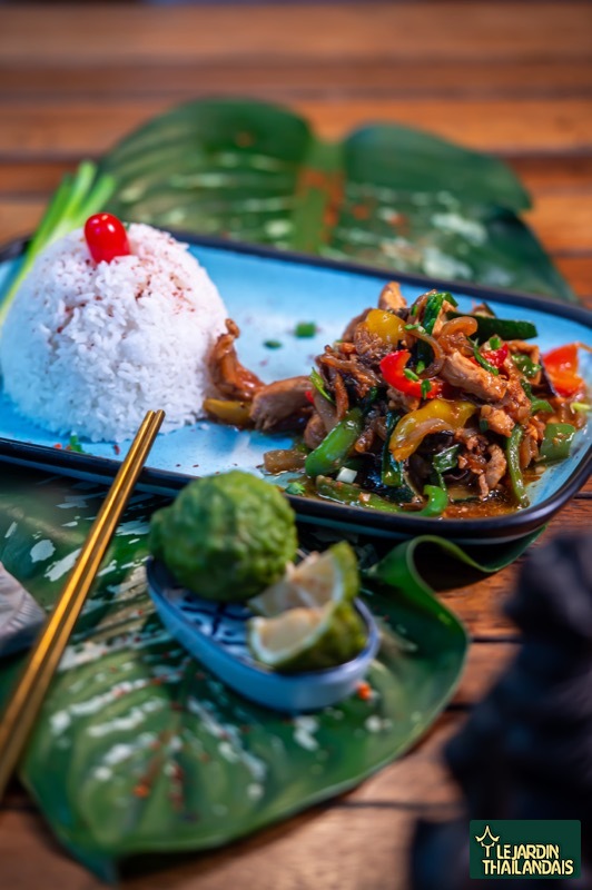 Bœuf, poulet, porc ou crevettes sautés au gingembre et champignons noirs.